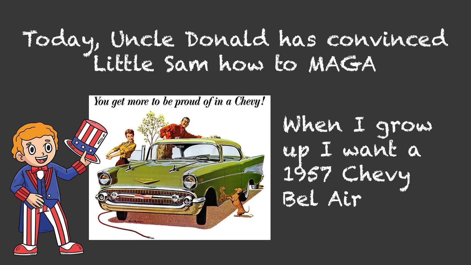 What has got into your head Sam? Why would you want a gas-guzzling 1957 Chevy? And what does it have to do with MAGA?
